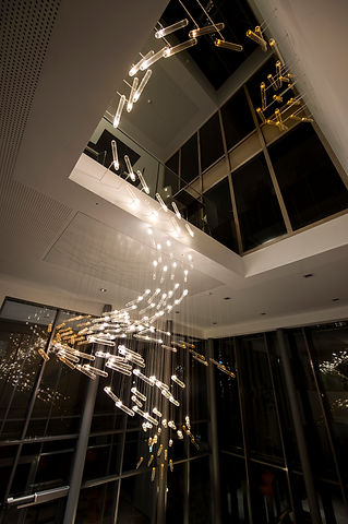 Artistic installation where the light imitates the behavior of flocks of birds in flight, symbolizing the conflict between the security of the group and the freedom of the individual.